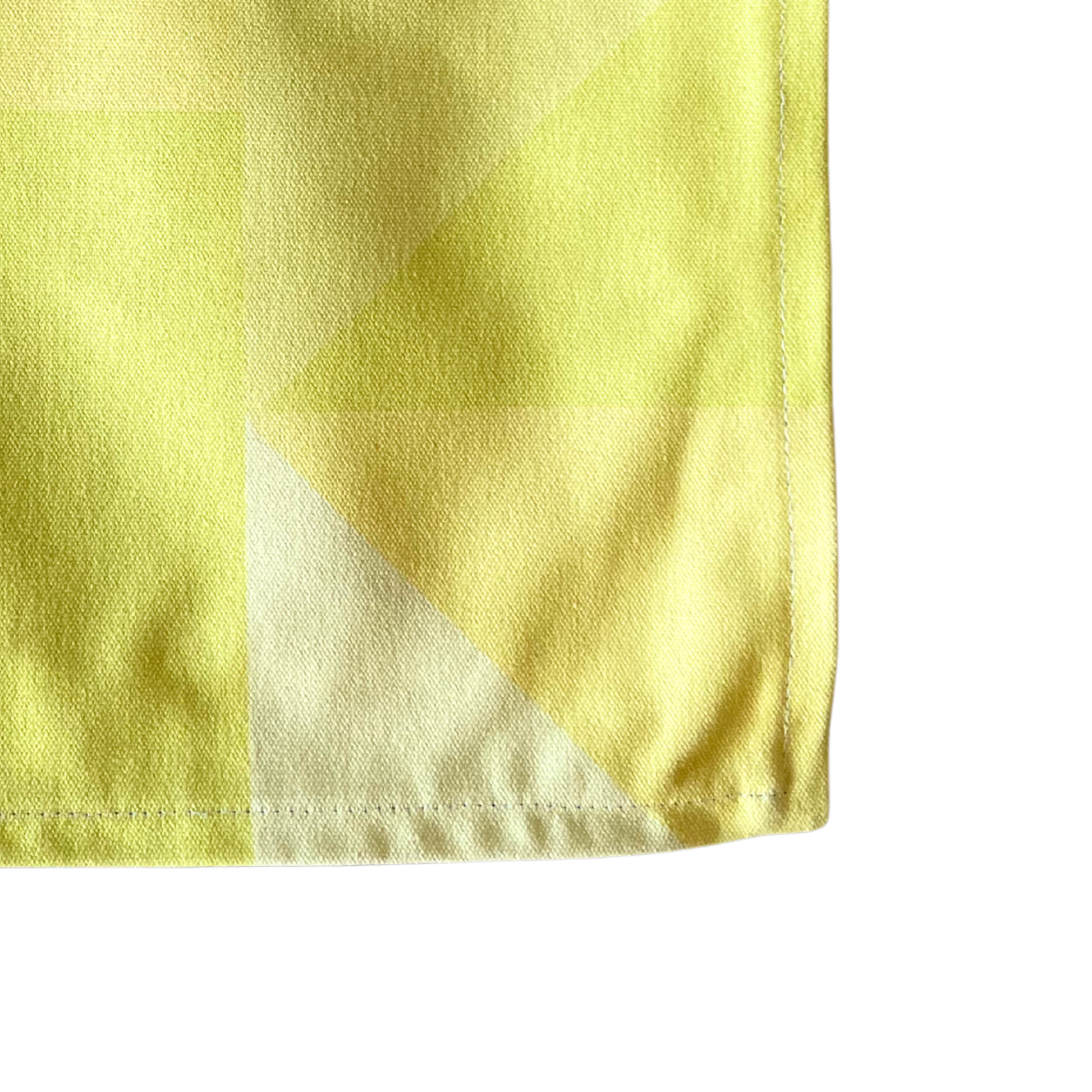 この作品は、穏やかな黄色と緑のグラデーションで構成された幾何学的な抽象画です。まるで春の柔らかな日差しが部屋に差し込むように、淡い色彩が心地よいハーモニーを奏でています。シンプルながらも、重なり合う図形が生み出す奥行きと、静かでやさしいリズムが魅力です。